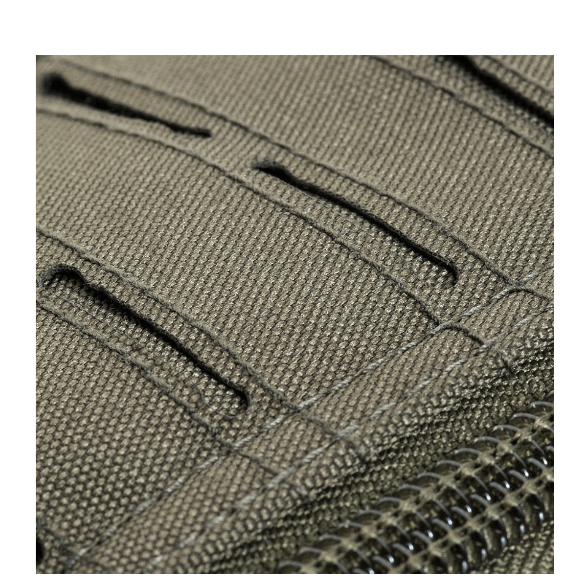 Repun takapuolella on suuri tasku, jossa on aktiivisesti hengittävä kalvo. M-Tac-asiantuntijat ovat käyttäneet uutta tekniikkaa modulaaristen taskujen kiinnittämiseen. Tavallisten PALS-nauhojen sijaan nailonkerrokseen on laserleikattu useita rivejä erityisiä reikiä, mikä mahdollistaa standarditaskujen kiinnittämisen MOLLE-kiinnikkeillä ja vähentää tuotteen kokonaispainoa noin 35 %.