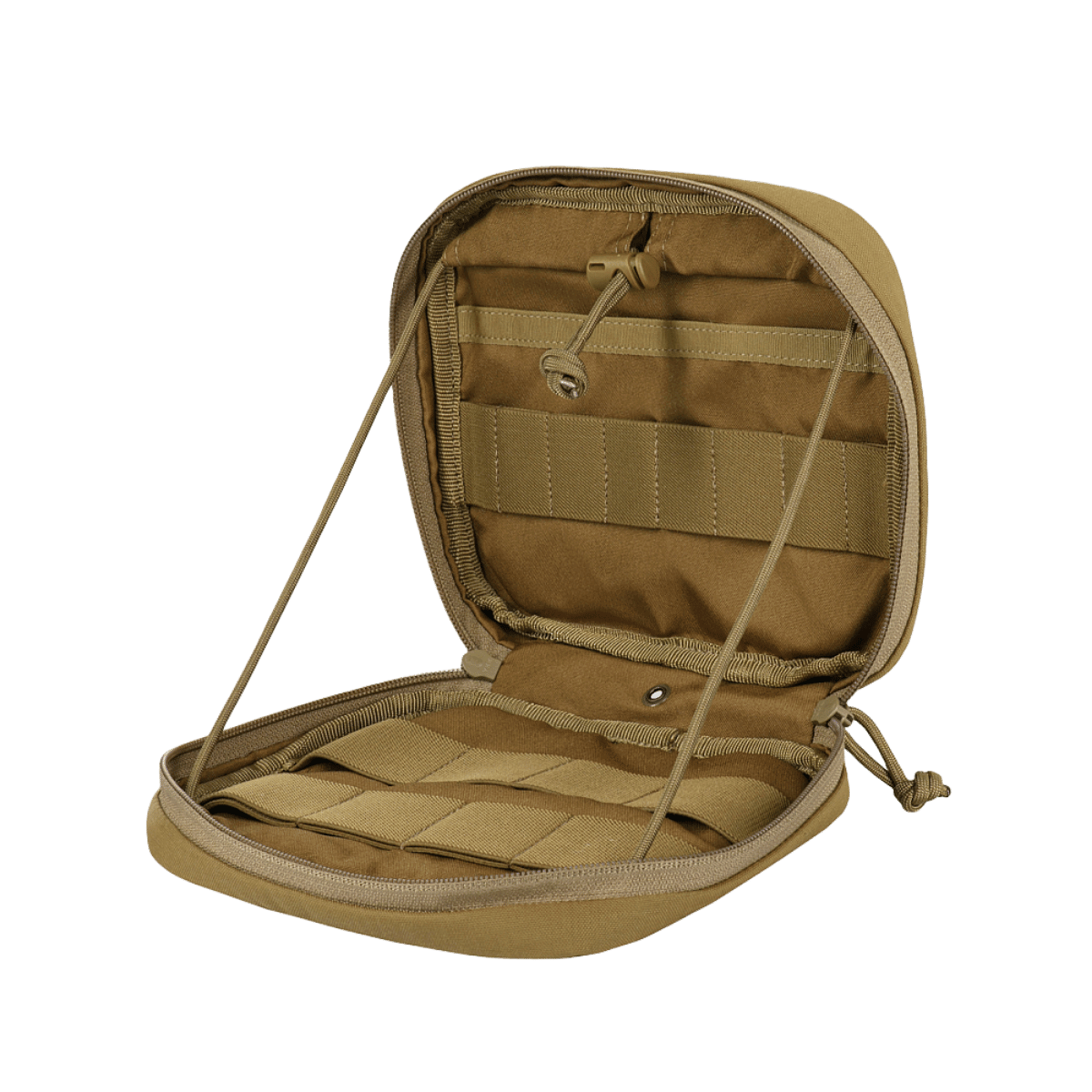 Pidike avautuu 90 asteen kulmaan, ja molempien puolien sisäpuolella oleva paracord-naru pitää sen auki. Tämä mahdollistaa helpon pääsyn sisältöön kenttäolosuhteissa.