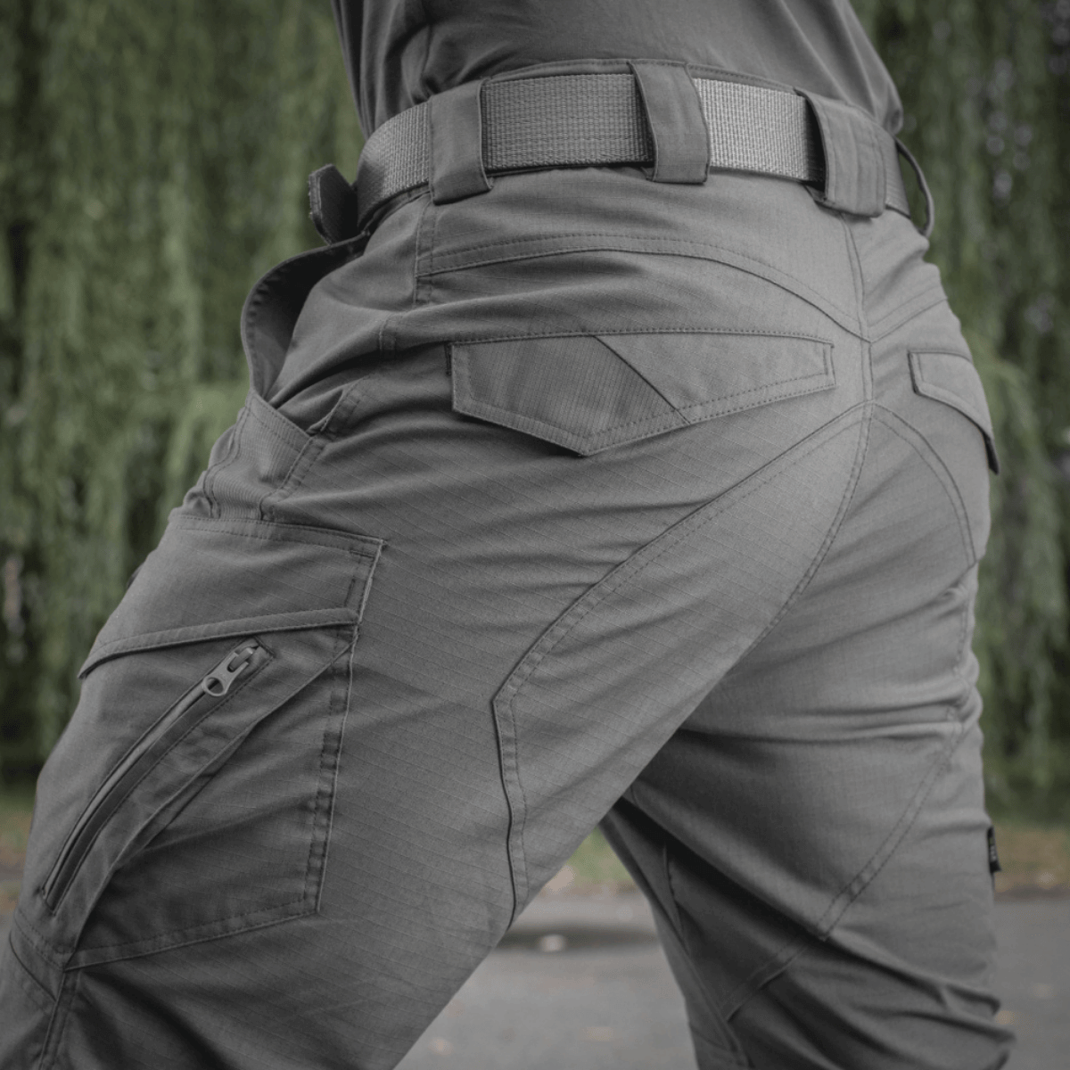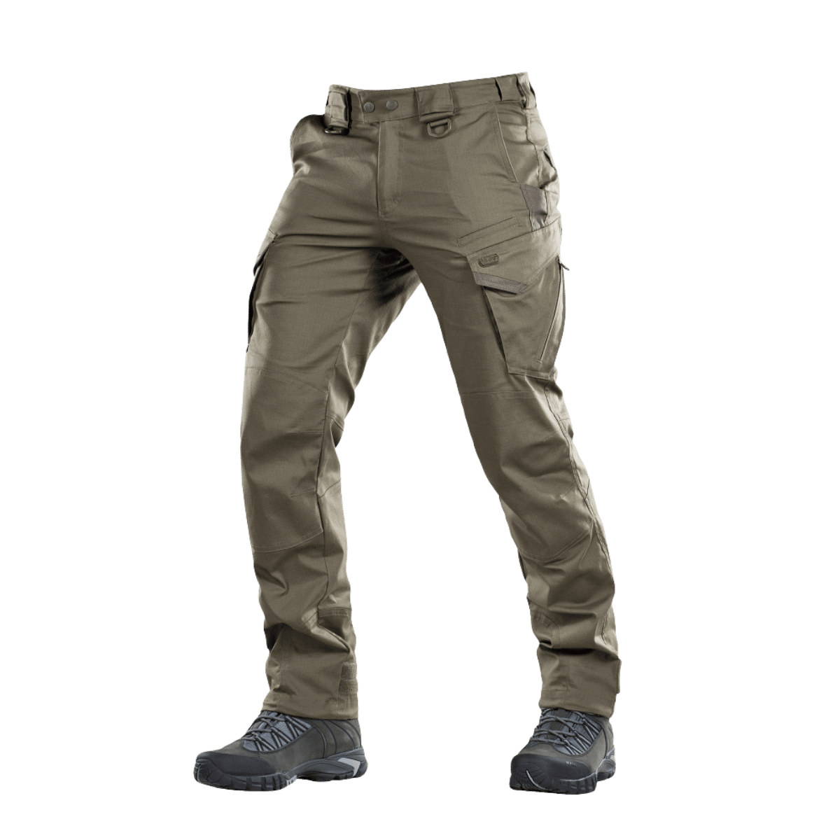 Suunnittelijoiden päätavoitteena oli säilyttää liikkumisvapaus, mikä on onnistunut. Housut tuntuvat kevyiltä ja näyttävät tyylikkäiltä ja tukevilta. Käytännöllisissä, leveissä taskuissa on lisävahvikkeet kulutukselle alttiimmissa kohdissa. Vyölenkit sopivat enintään 5,5 cm leveille vyöille. Etuvyölenkit on ommeltu soljilla lisävarusteiden kiinnittämistä varten. Vetoketjut ja napit ovat maailman johtavalta kiinnitystarvikevalmistajalta, YKK:lta. M-Tacin Aggressor Gen.II Flex on onnistunut yhdistelmä harkittua leikkausta, korkeaa laatua ja laajaa käyttötarkoitusta. Hyvä istuvuus takaa optimaalisen mukavuuden.