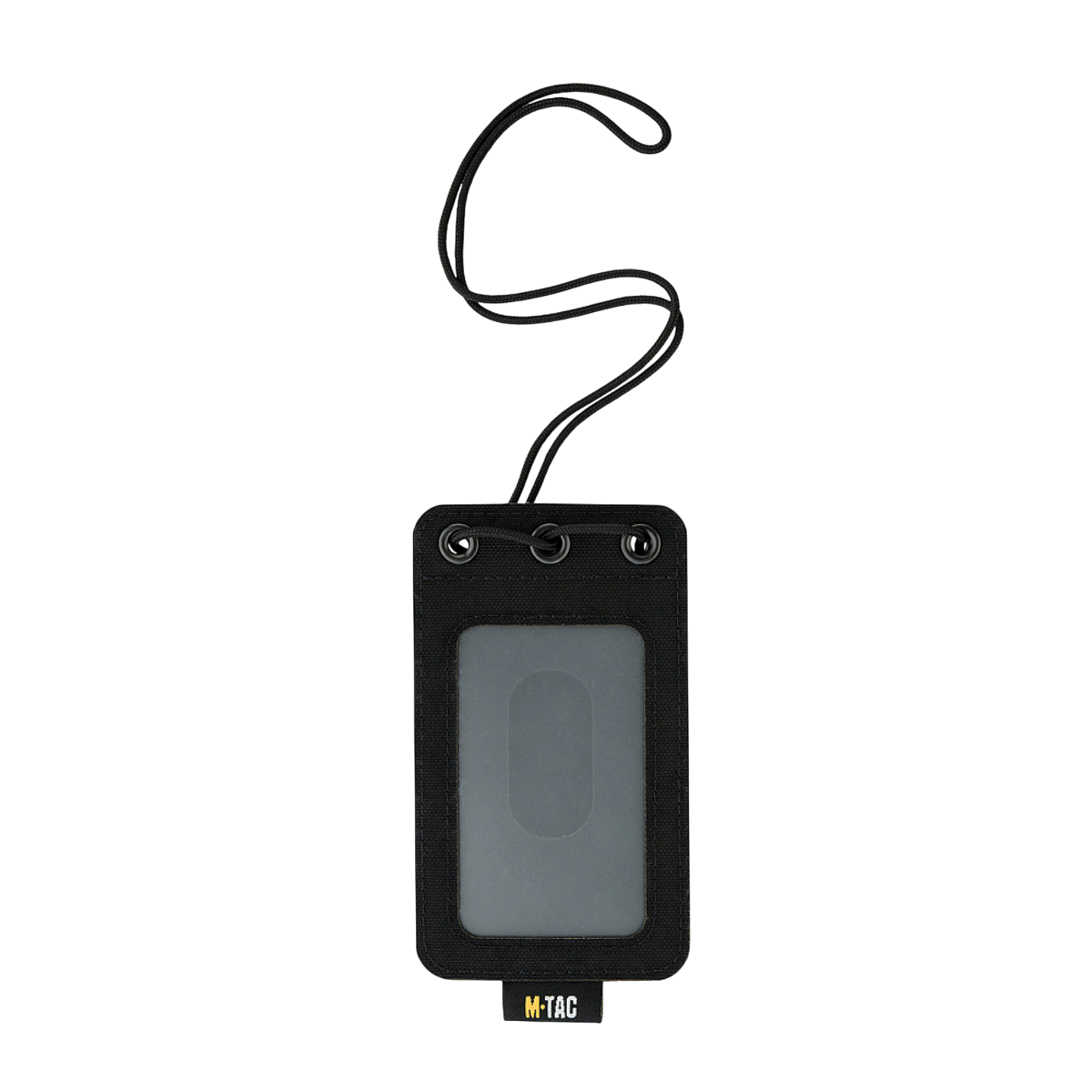M-Tac taktinen tunnuksenpidike läpinäkyvällä paneelilla ja mukana tulevalla nauhalla. Voidaan kiinnittää tarranauhalla tai käyttää kaulassa. Kestävä Cordura-kangas.