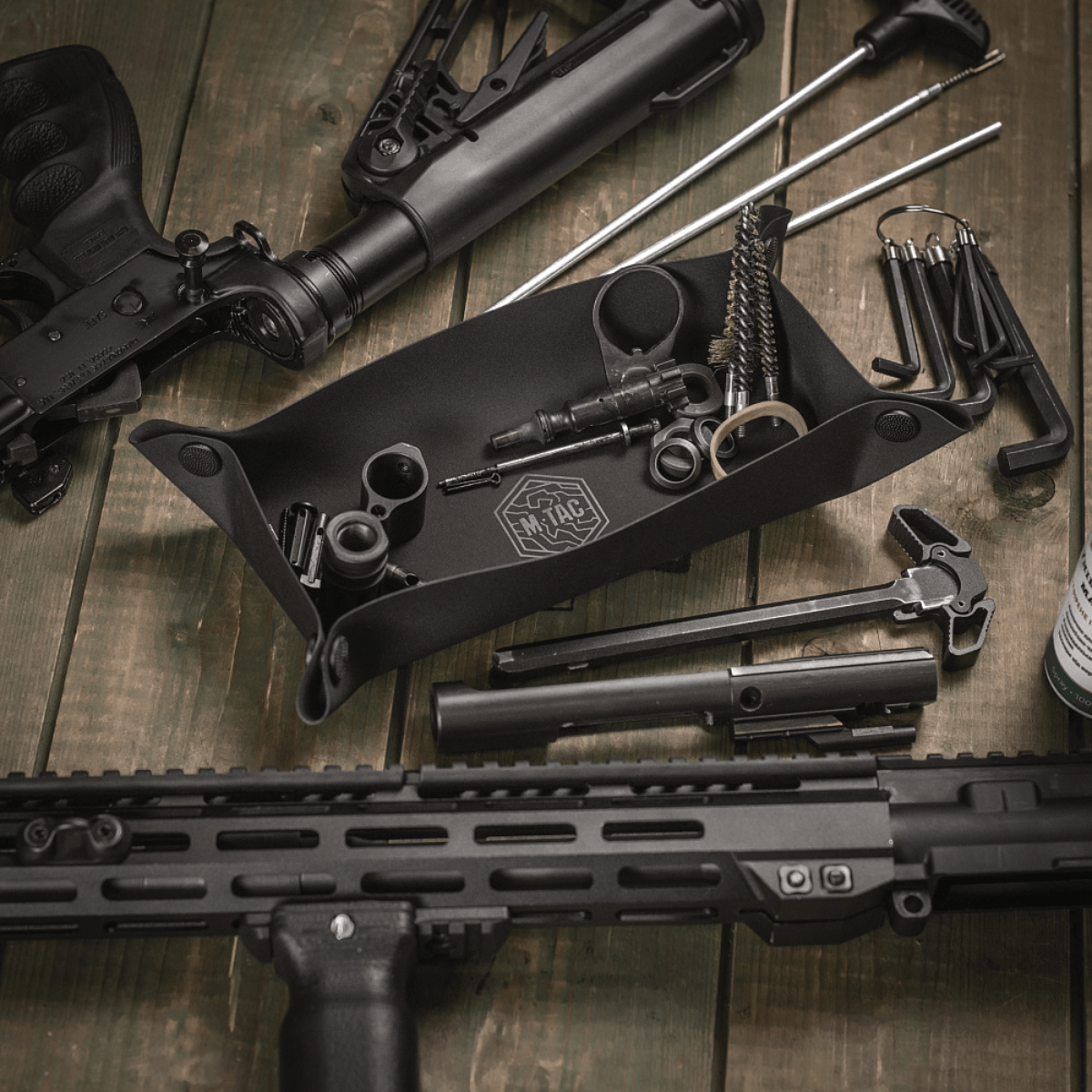 M‑Tac Field Huoltoalusta 18x30 cm on käytännöllinen alusta, joka on suunniteltu aseiden huoltoon harjoitus- ja ampumaradoilla.